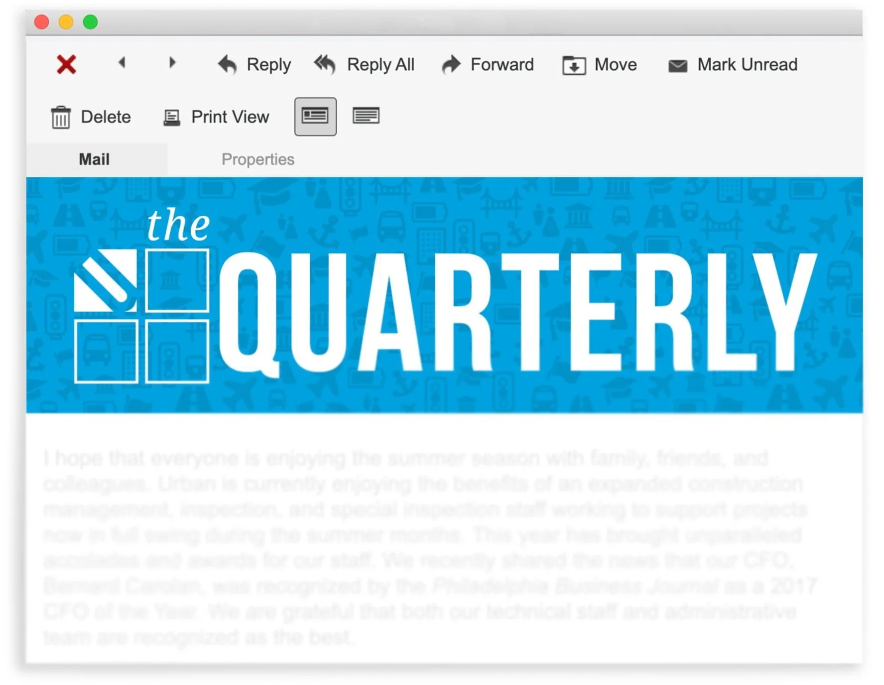 Quarterly email header sent company-wide from Urban Engineer's CEO