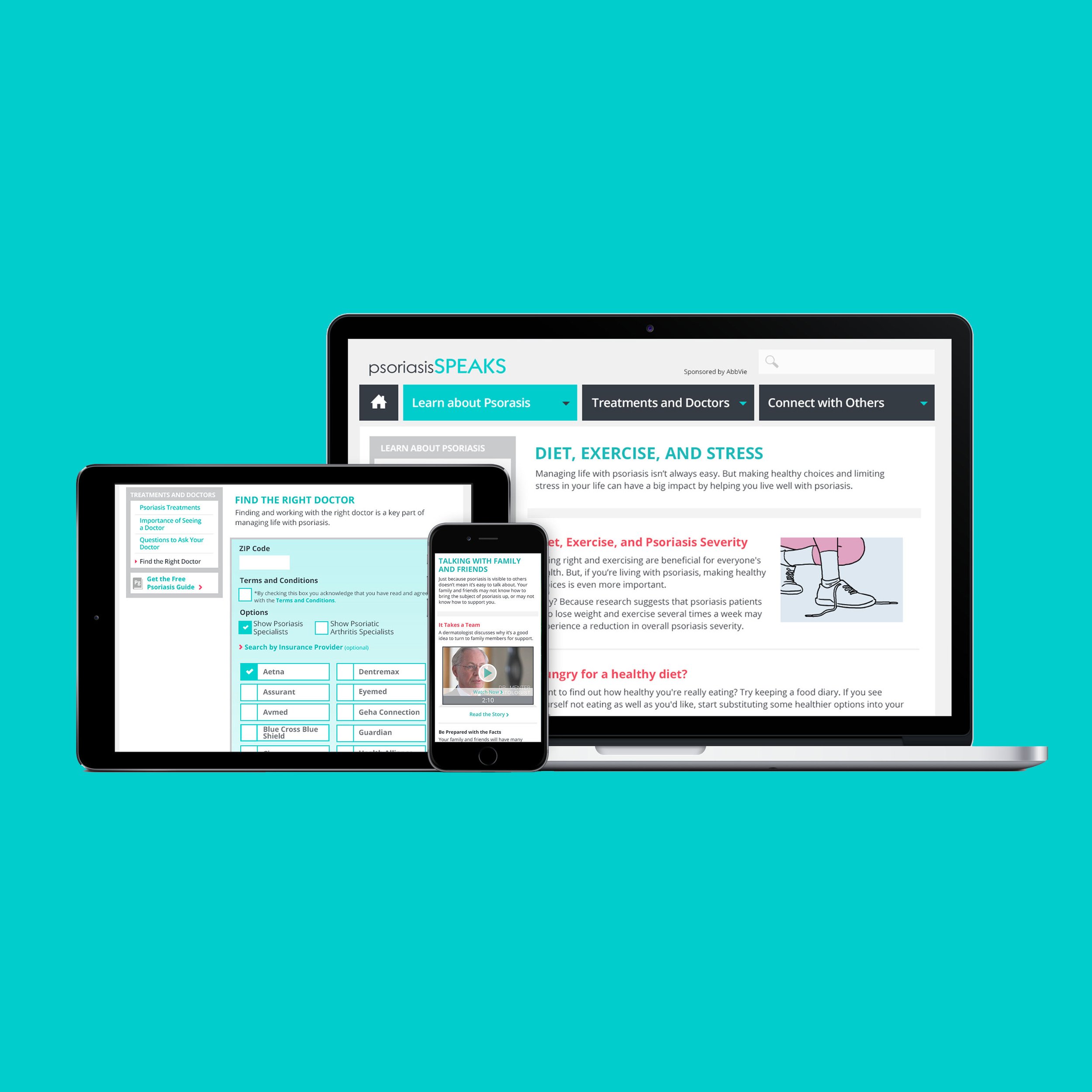 For this project, I collaborated with a cross-functional team of designers, UX specialists, and copywriters at Digitas Health LifeBrands to design pages for Psoriasis.com. Working within newly established brand guidelines, the team developed a cohesive visual direction that supported both patient education and an intuitive user experience.